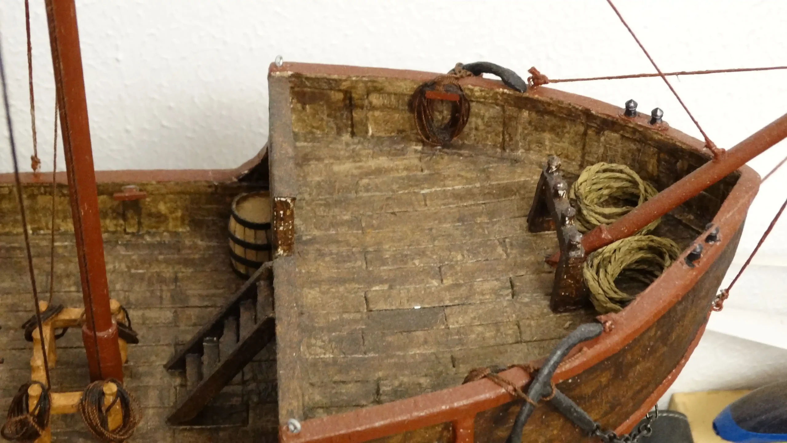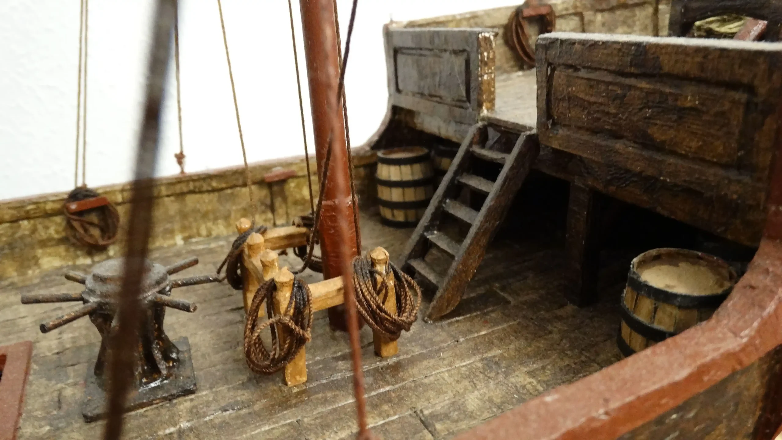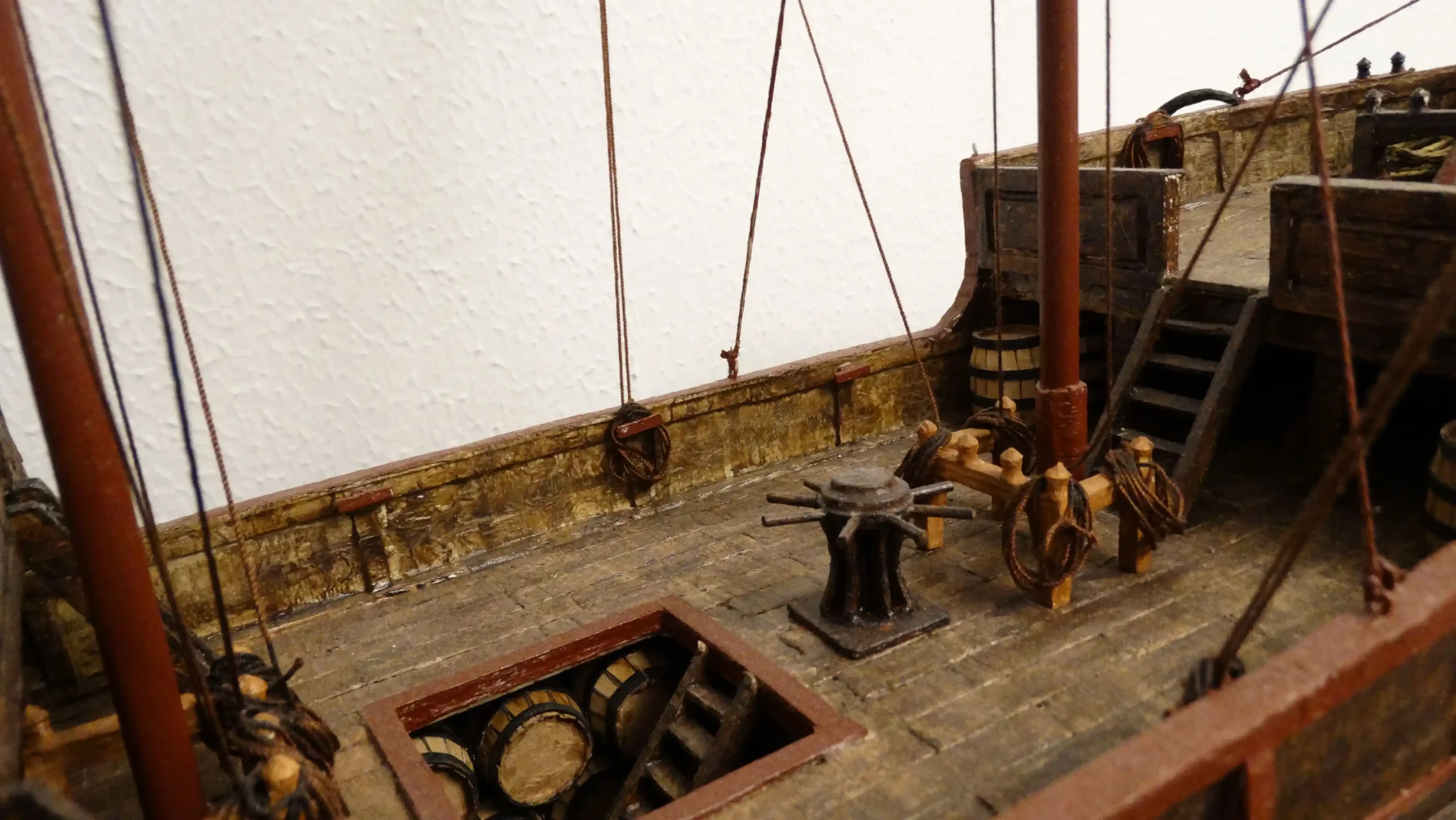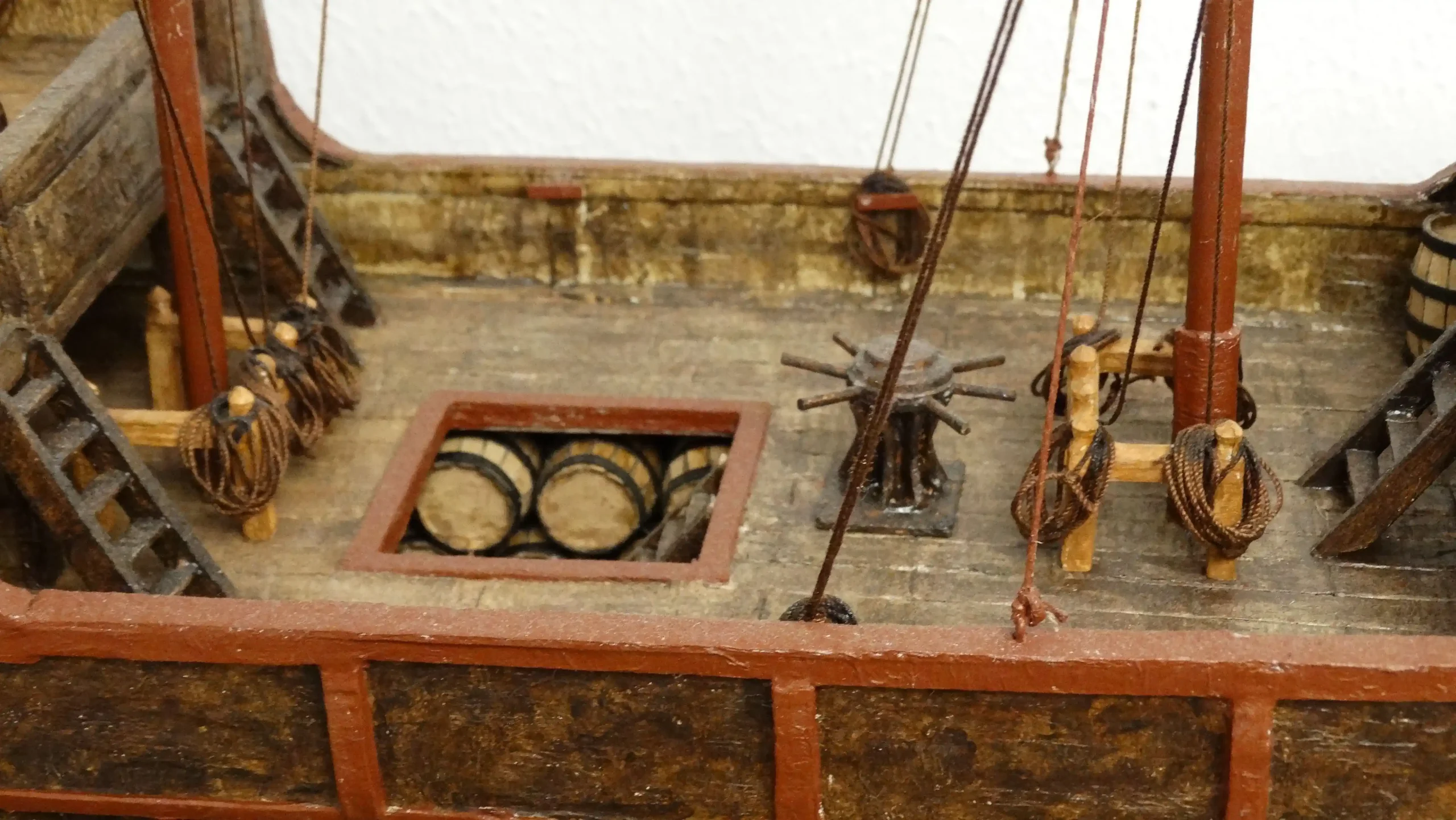 Podemos ver en detalle la bodega con algunos de los barriles y vasijas que se utilizaban para el transporte.
