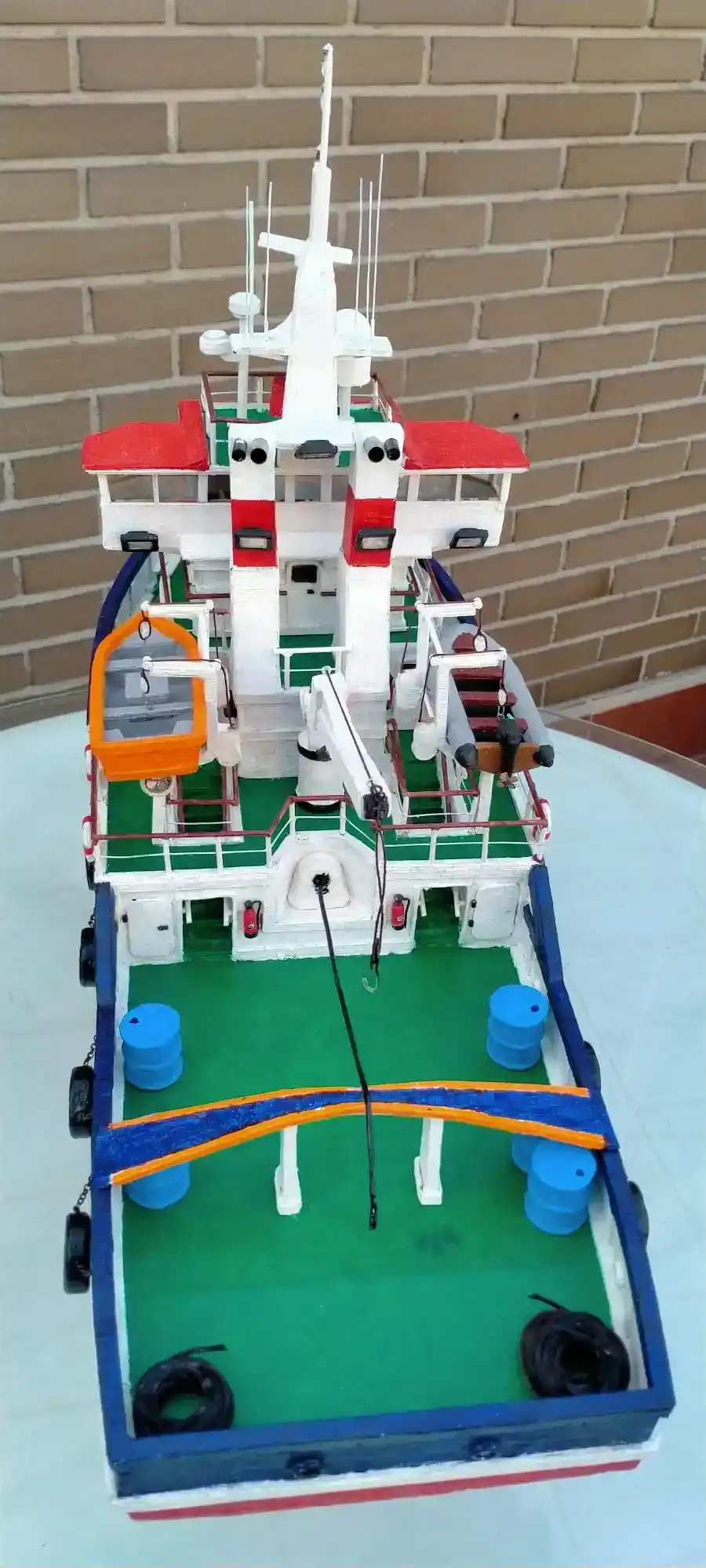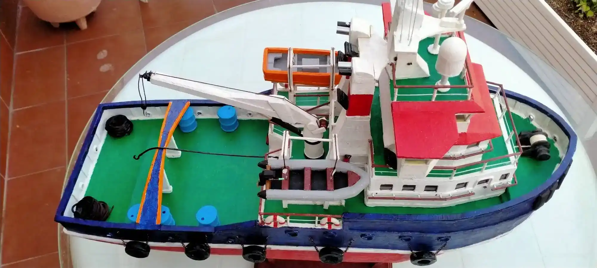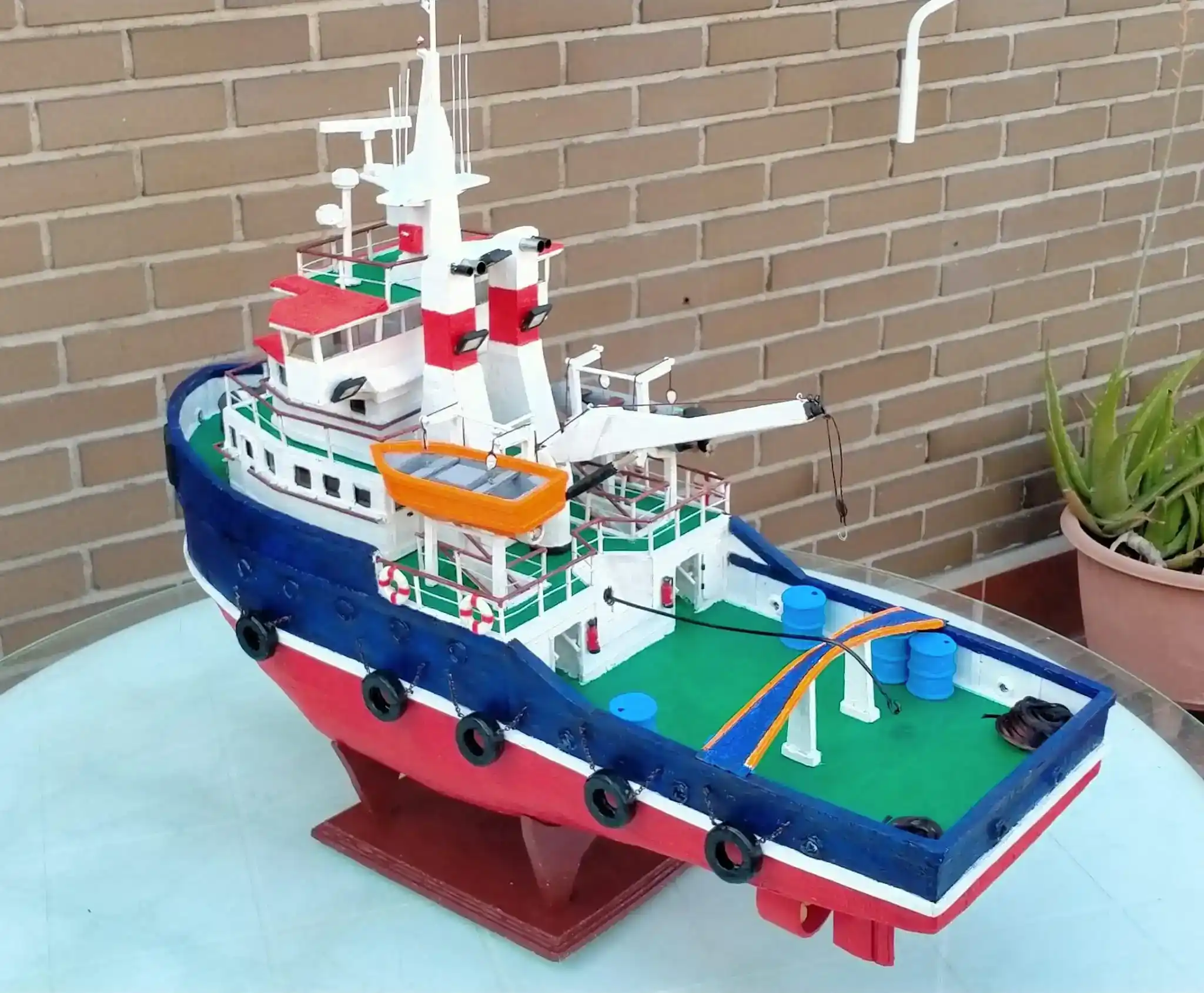 Este barco representa a un remolcador de altura. Este tipo de barcos se utiliza para remolcar grandes barcos como petroleros, portacontenedores y plataformas petrolíferas. Cuentan con motores de gran potencia para realizar su cometido. En el caso de barco que se expone, no obedece a ningún barcos es concreto y es pura fantasía del autor.