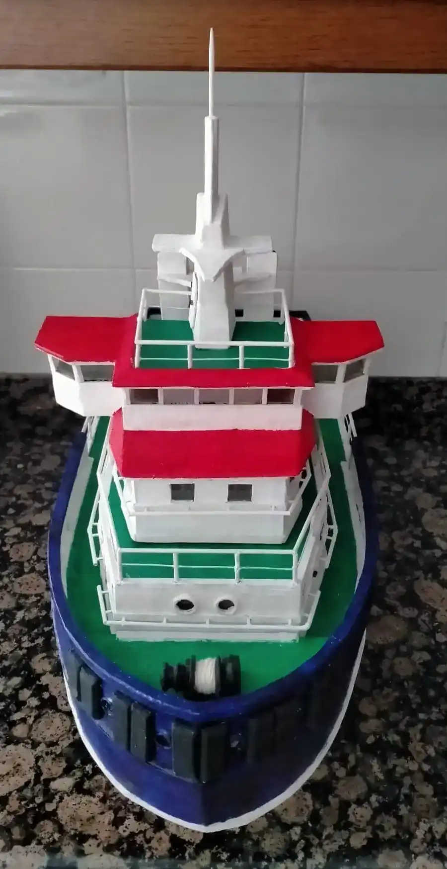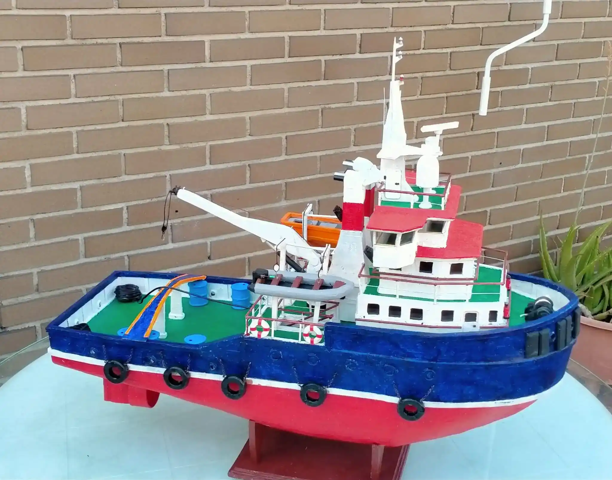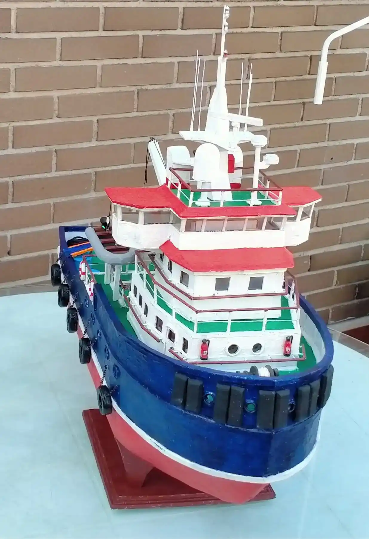 Este barco representa a un remolcador de altura. Este tipo de barcos se utiliza para remolcar grandes barcos como petroleros, portacontenedores y plataformas petrolíferas. Cuentan con motores de gran potencia para realizar su cometido. En el caso de barco que se expone, no obedece a ningún barcos es concreto y es pura fantasía del autor.